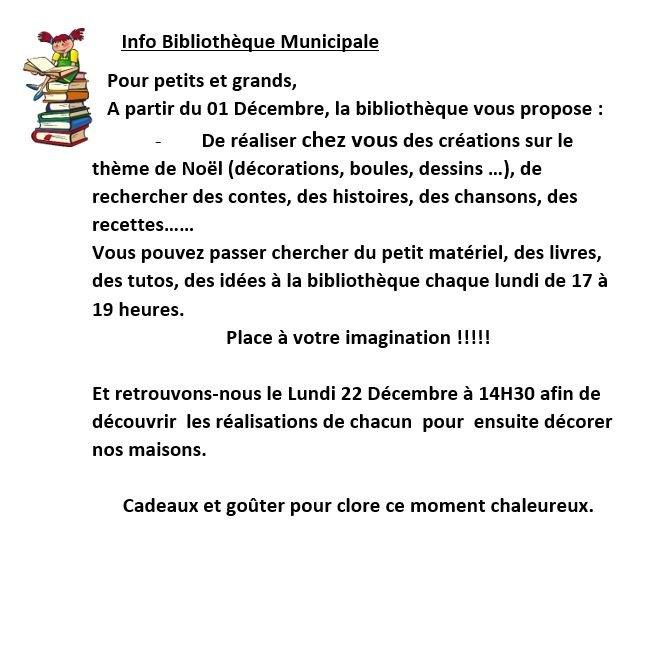 A partir du 01 Décembre, la bibliothèque vous propose :