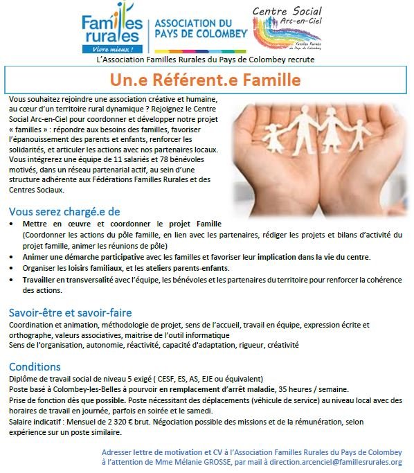 📢 LE CENTRE SOCIAL ARC-EN-CIEL RECRUTE 📢