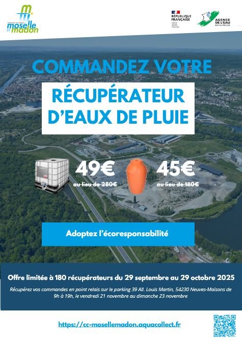 Pour relever ce défi, la Communauté de Communes Moselle et Madon propose, en partenariat avec Aquacollect, un achat groupé de récupérateurs d’eaux de pluie.